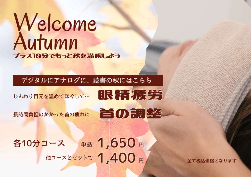 こちらで受けること眼精疲労や首の調整はそんなお疲れにおすすめ!